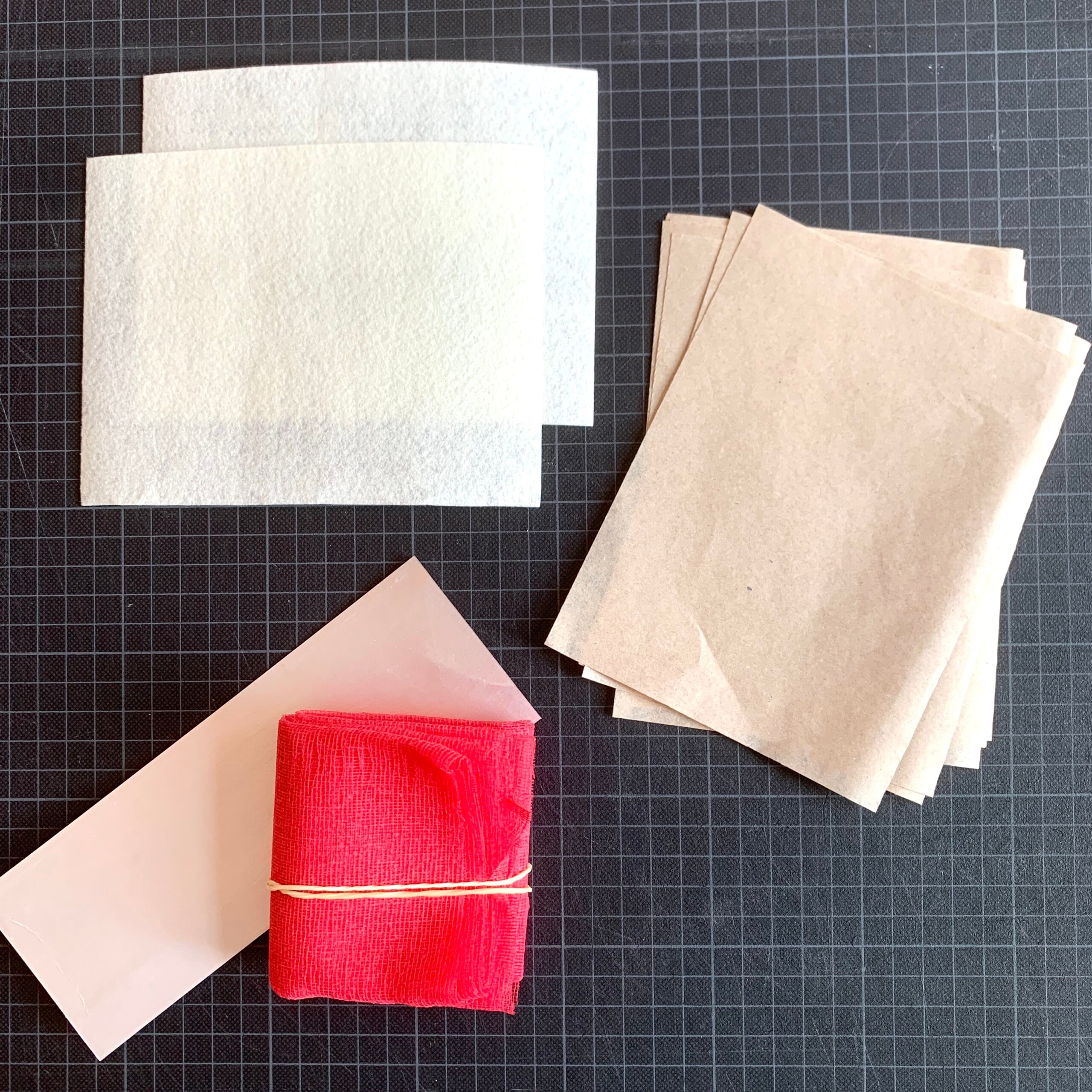 – 20 morceaux de papier de soie, pour protéger la feutrine lors du passage dans la presse